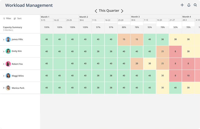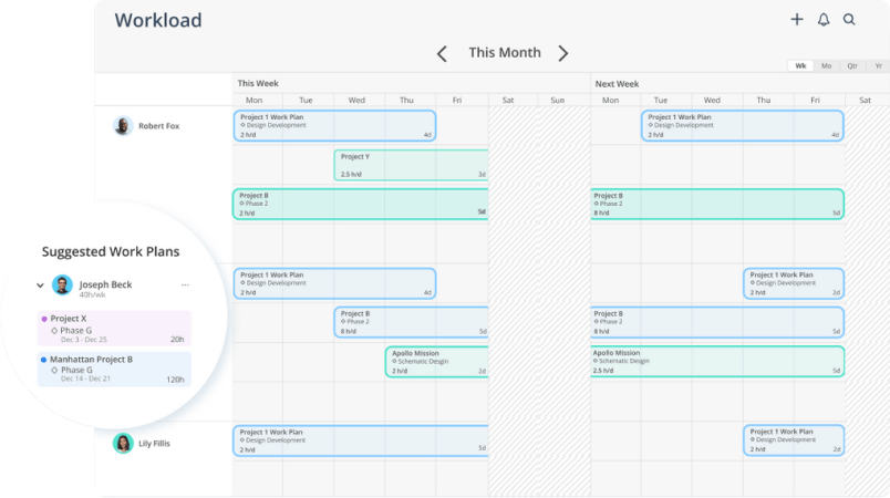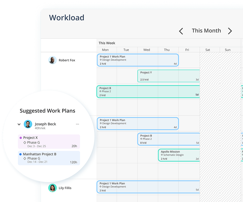 As projects evolve and priorities shift, Mosaic AI continuously analyzes your resource pipeline and suggests reallocations. Balance workloads dynamically based on changing business needs.